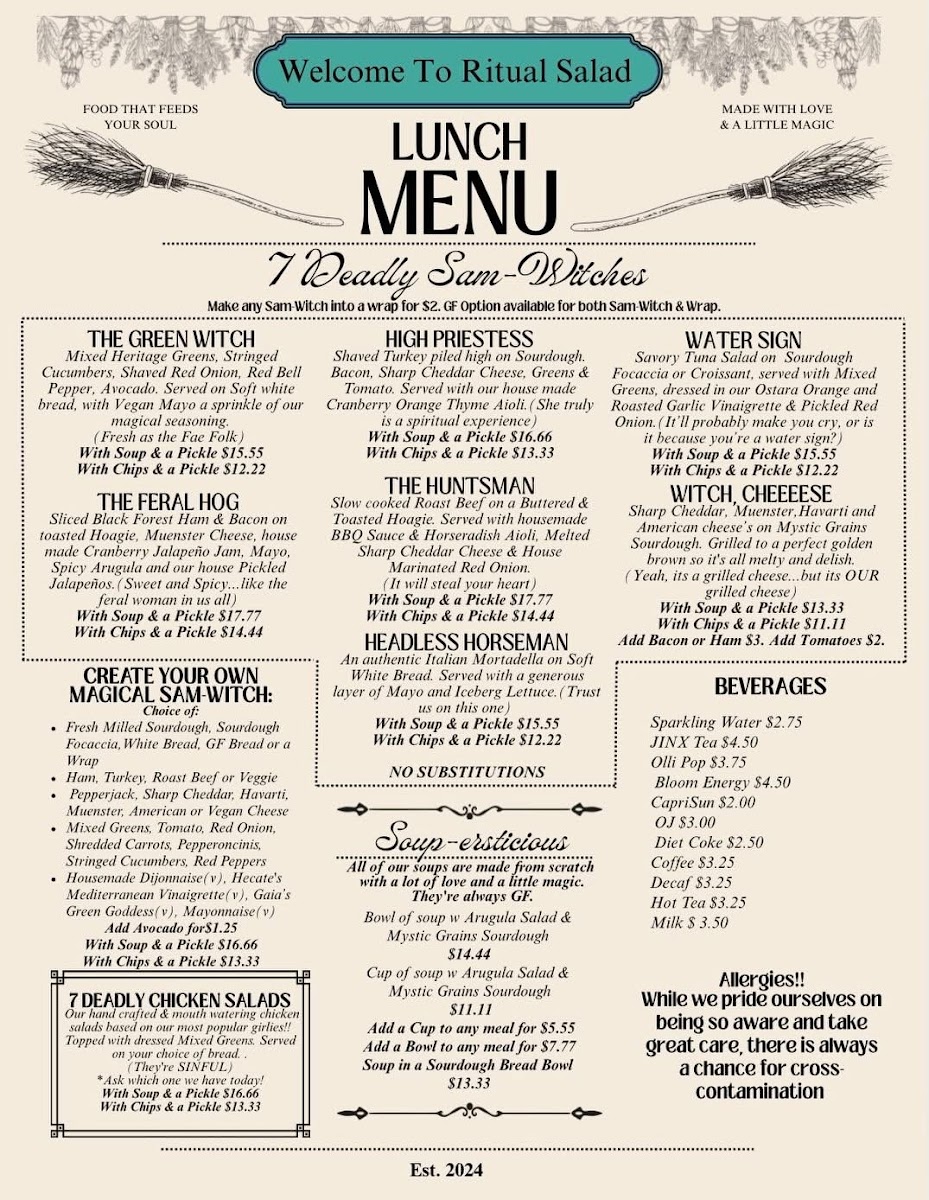 From colorful greens to crunchy toppings and flavorful dressings, each salad is crafted with the finest ingredients to create the perfect balance of taste and texture. You can expect everything from seasonal picks to custom options that make each bite feel like a ritual in itself. The salads aren’t just meals; they’re an invitation to enjoy wholesome, delicious food that's good for the body and soul.